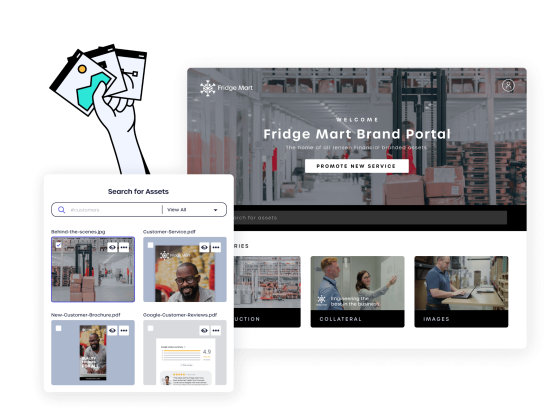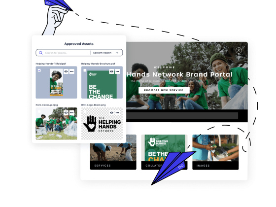Provide users with a curated library of pre-approved, brand-compliant materials available for immediate order.